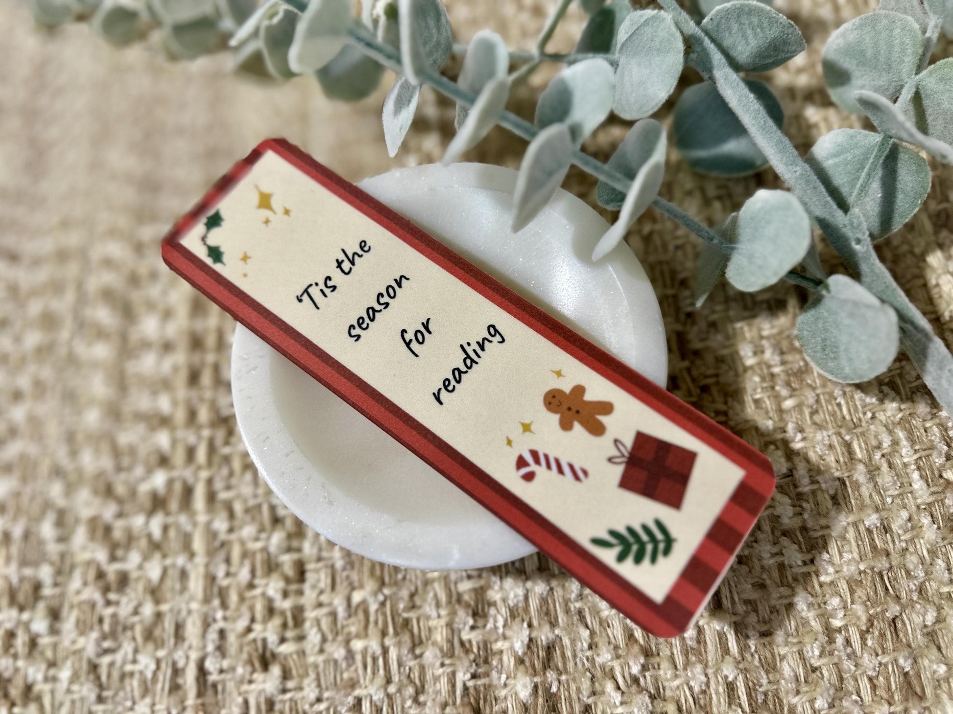 This Christmas bookmark is the perfect festive gift for book lovers, cozy readers, and stocking stuffers this holiday season. This bookmark features a cheerful holiday design with candy canes, gingerbread, holly, and a wrapped gift, along with the phrase “’Tis the season for reading.” A thoughtful stocking stuffer or bookish gift for friends, teachers, or any book lover who enjoys curling up with a good story during the holidays.